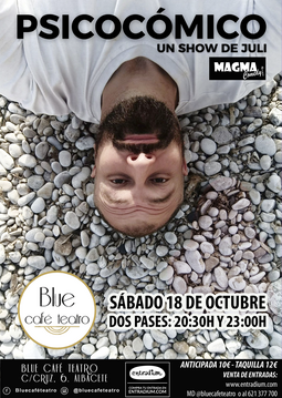 El próximo sábado 18 de OCTUBRE en el BLUE TEATRO de ALBACETE, vuelve la comedia de la mano de "JULI" Psicólogo, educador social y cómico... Presentador habitual de las noches de comedia en La Cuna de la comedia de MAGMA COMEDY en Elche y creador de "La Comedia, un enfoque terapéutico"